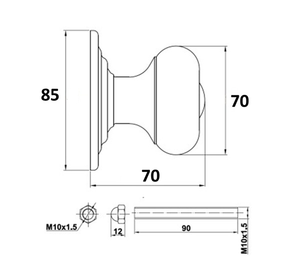 Dimensiones: Diámetro Pomo: 70 mm / Diámetro Base: 85 mm