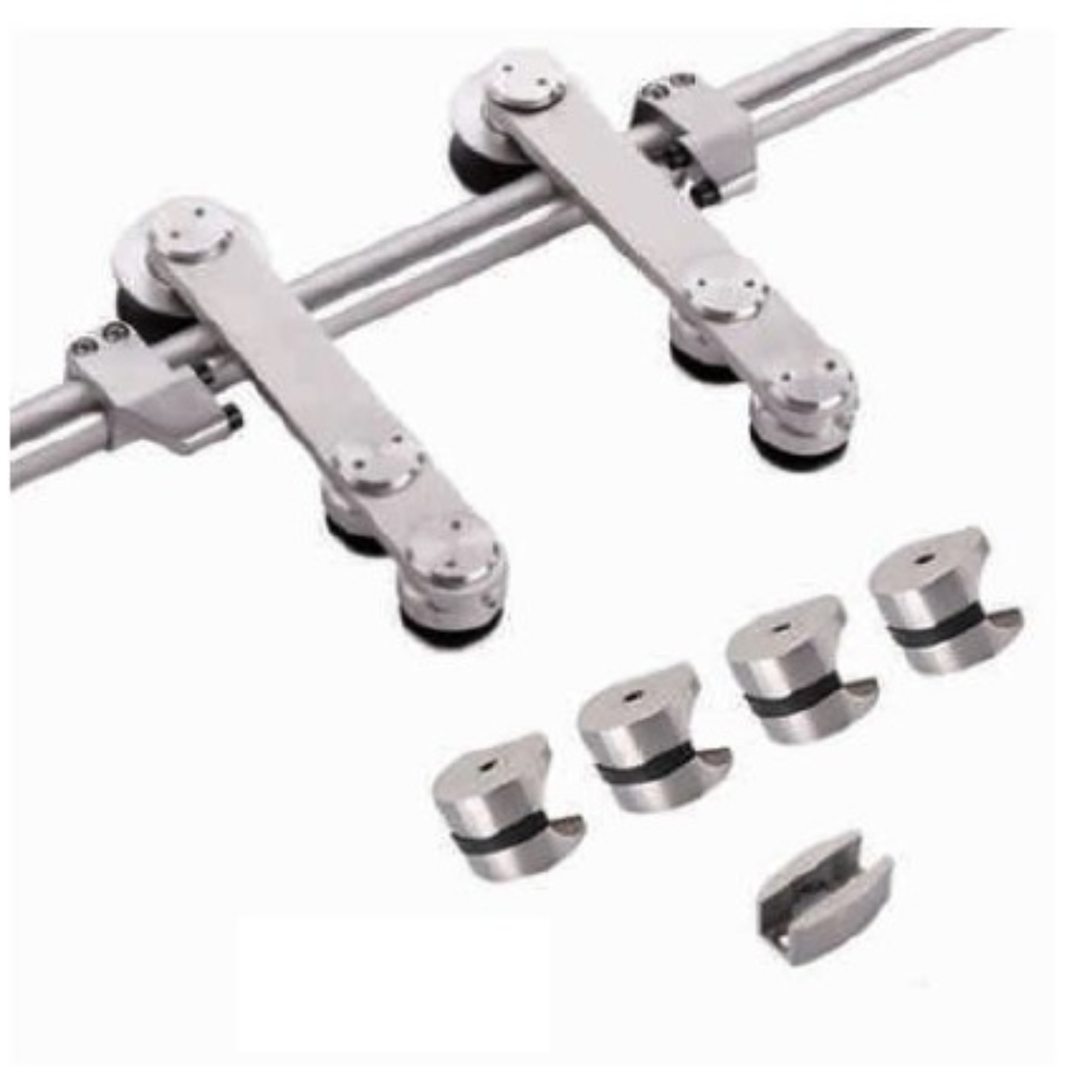 Sistema de corredera para puertas de cristal Acero inoxidable AISI 304 Espesor cristal 8-12mm 100 kg.