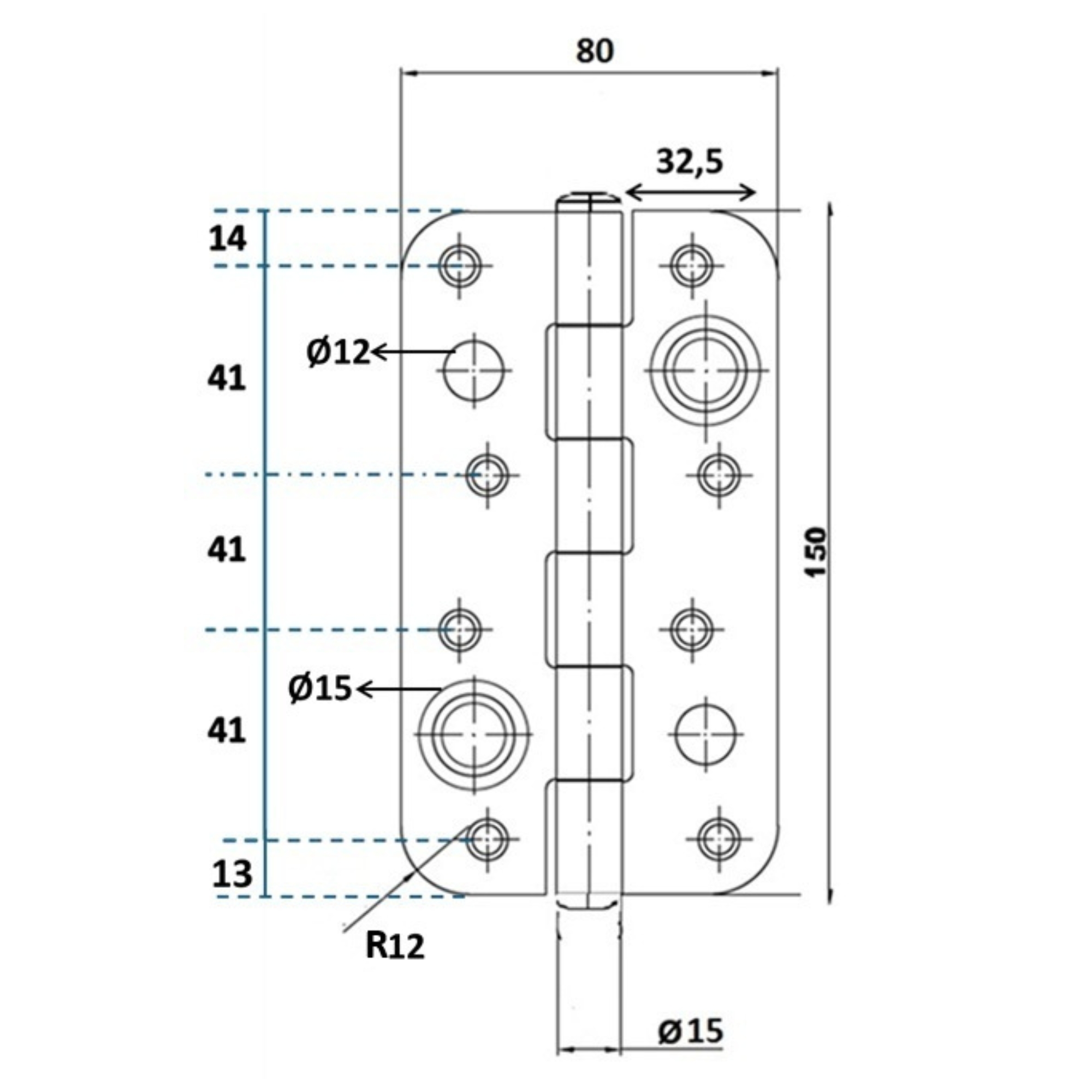 Dimensiones: Cuerpo sólido de 150 mm × 80 mm con perfil de 3 mm de grosor.