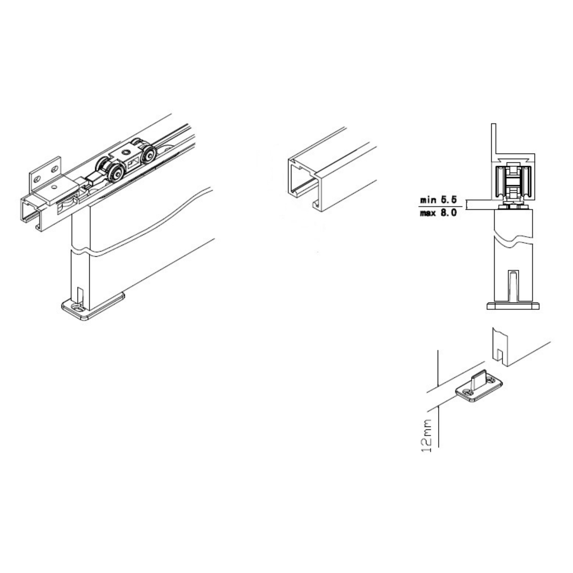 Sistema de ruedas de embutir Los soportes están diseñados para ser encastrados en el canto superior de la puerta, minimizando la holgura y mejorando la estética final.