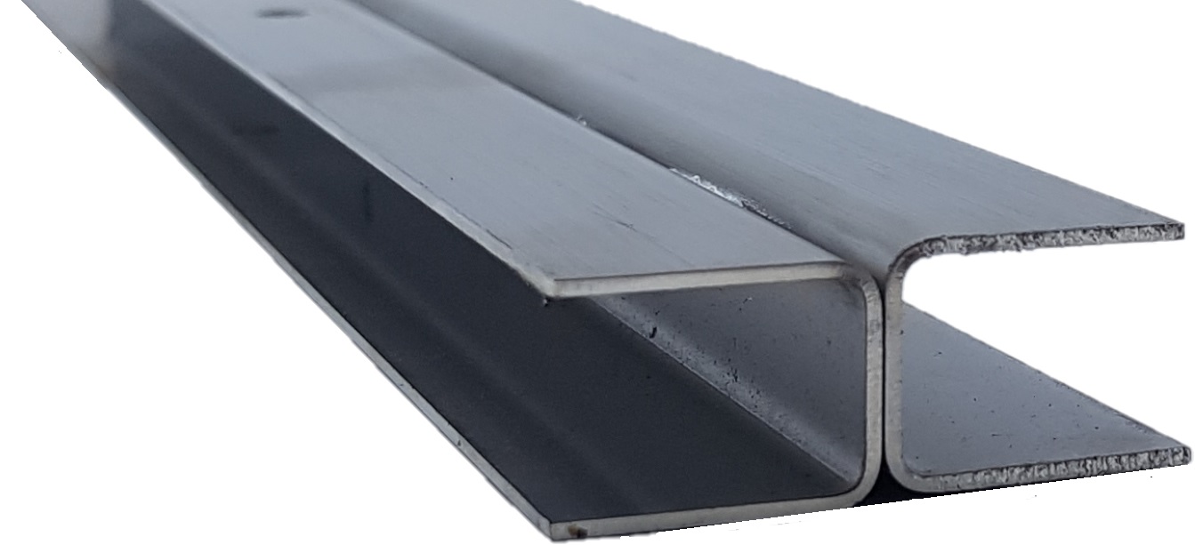 Perfil en H, para unión de paneles en cabinas sanitarias.