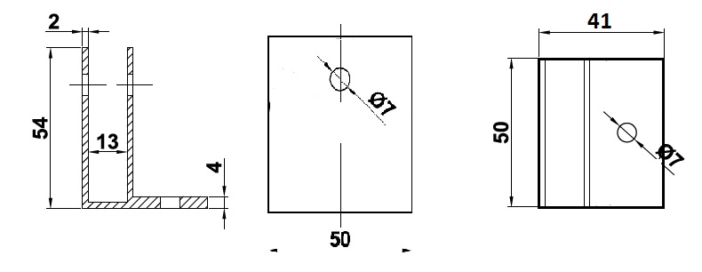 Pinza de sujección pared-panel de 50 x 41 x 54 mm