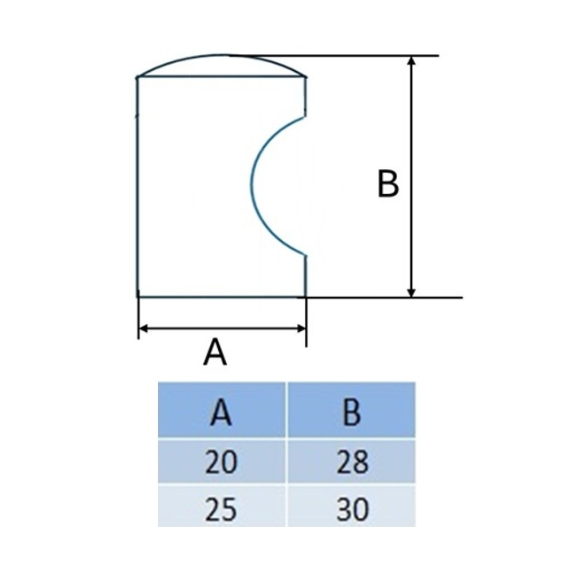 Diseño Funcional: Su estructura cilíndrica con muesca lateral se presenta en diámetros de 20 mm y 25 mm, permitiendo un agarre firme y un control directo de la apertura.